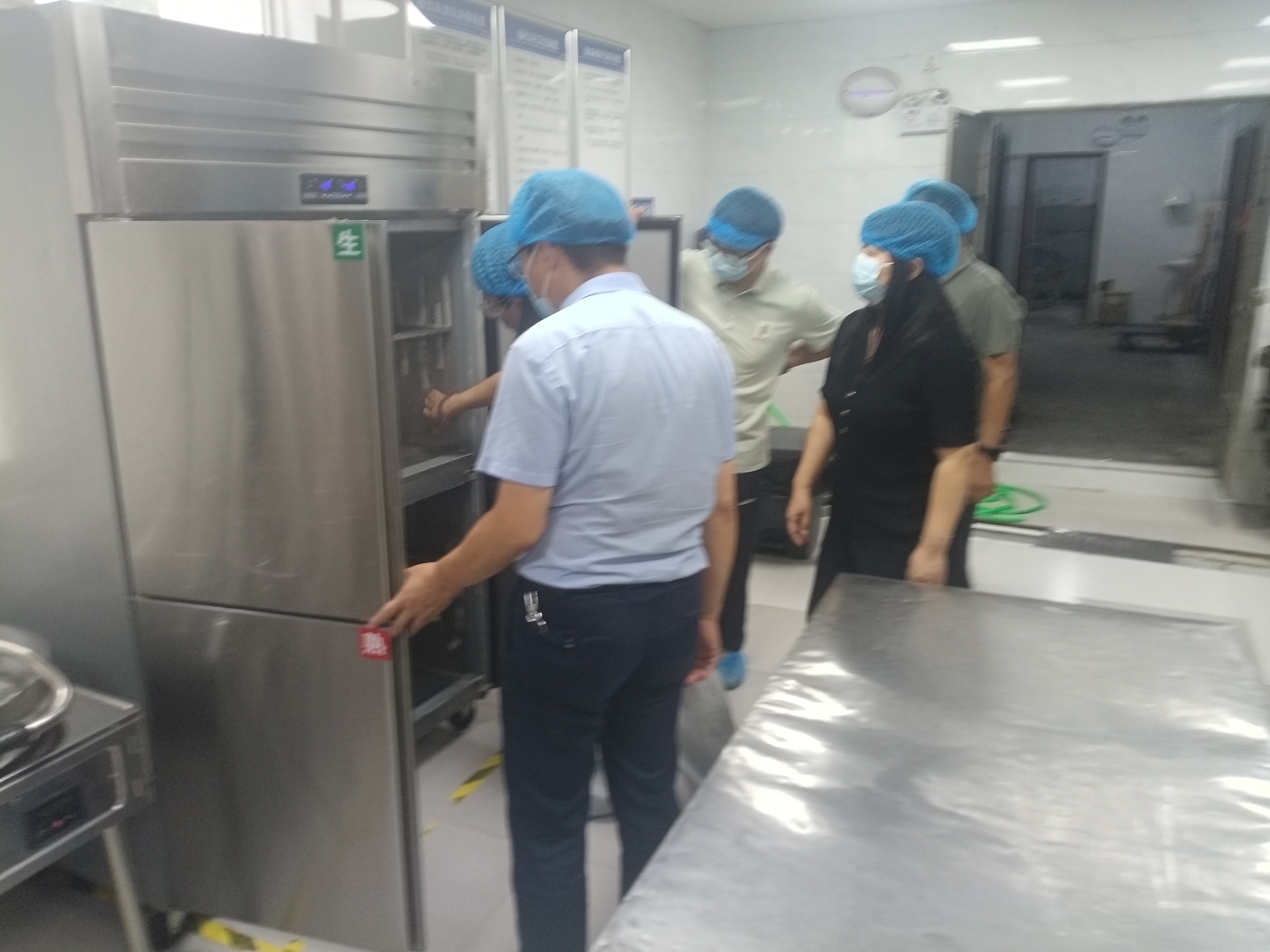 在食堂,对食堂操作间、储藏间的卫生状况,食品原料采购、储存、加工流程,餐具消毒、留样制度落实情况进行细致检查;核查饮用水设备定期清洗消毒及水质检测报告。