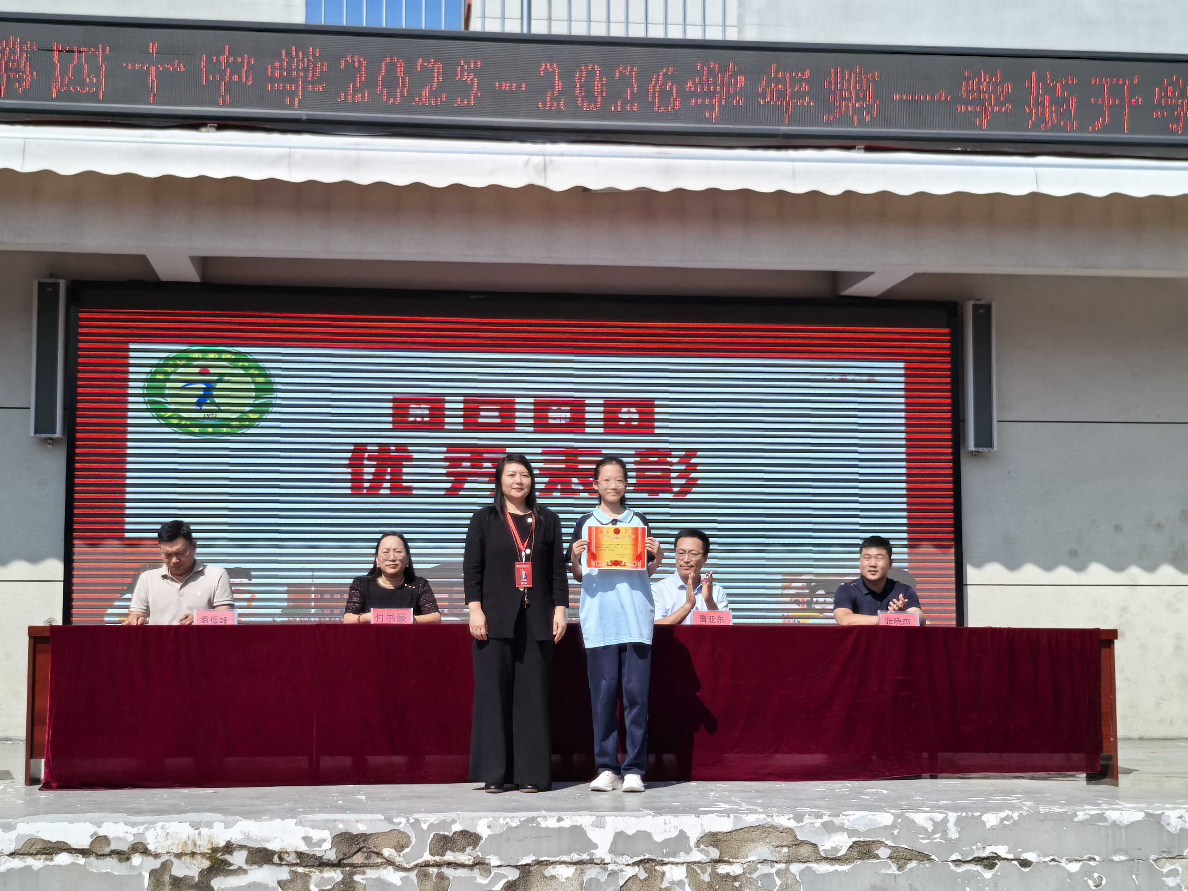 紧接着,典礼进入了激动人心的优秀表彰环节。党总支书记樊吕娜为获得一等奖的学生颁发奖状,副校长付书豪、袁振峰、张晓杰分别为二等奖和单科第一学生颁奖,台下掌声雷动。此举旨在树立榜样,激励全体同学见贤思齐,在新学期里争先创优,营造比学赶帮超的积极氛围。